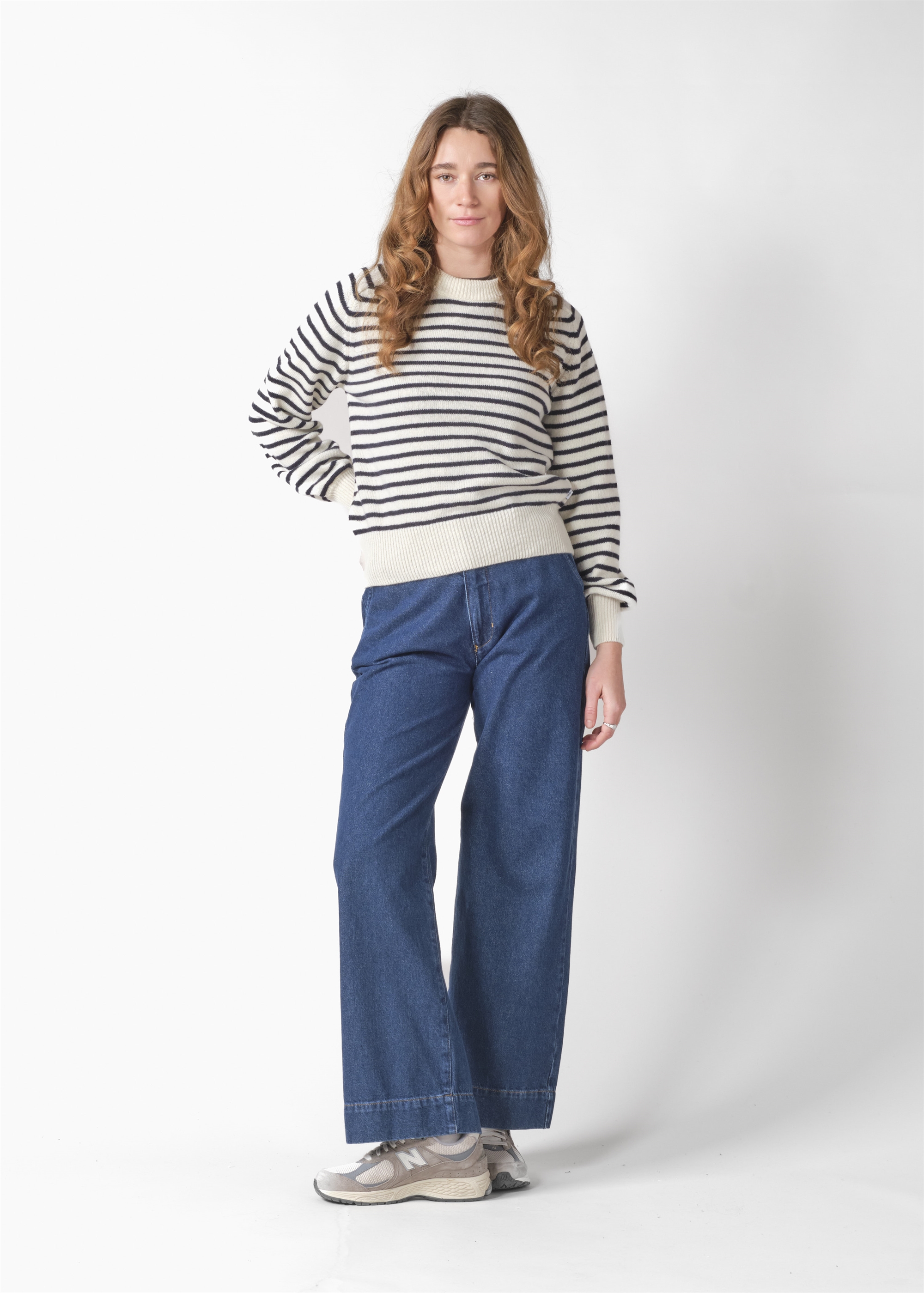 Ivy Knit fra Klitmøller Collective er en klassisk strik med et maritimt udtryk og et tidløst design. Kombinationen af cream og navy giver et rent og nordisk look, der passer perfekt til både hverdagsbrug og kølige dage ved kysten.