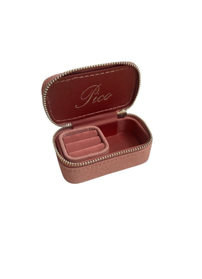 En lille, blød smykkeboks perfekt til opbevaring af dine favoritøreringe og små accessories. Den kompakte størrelse gør den ideel til rejser og tasken, mens lynlåset holder alting sikkert på plads. En fin, praktisk detalje i hverdagen.